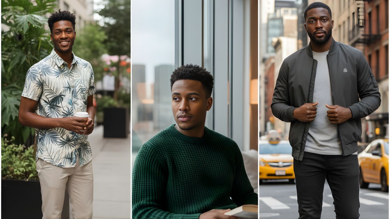 Men’s Green & Orange Abstract Print Short-Sleeve Button-Up Casual Shirt